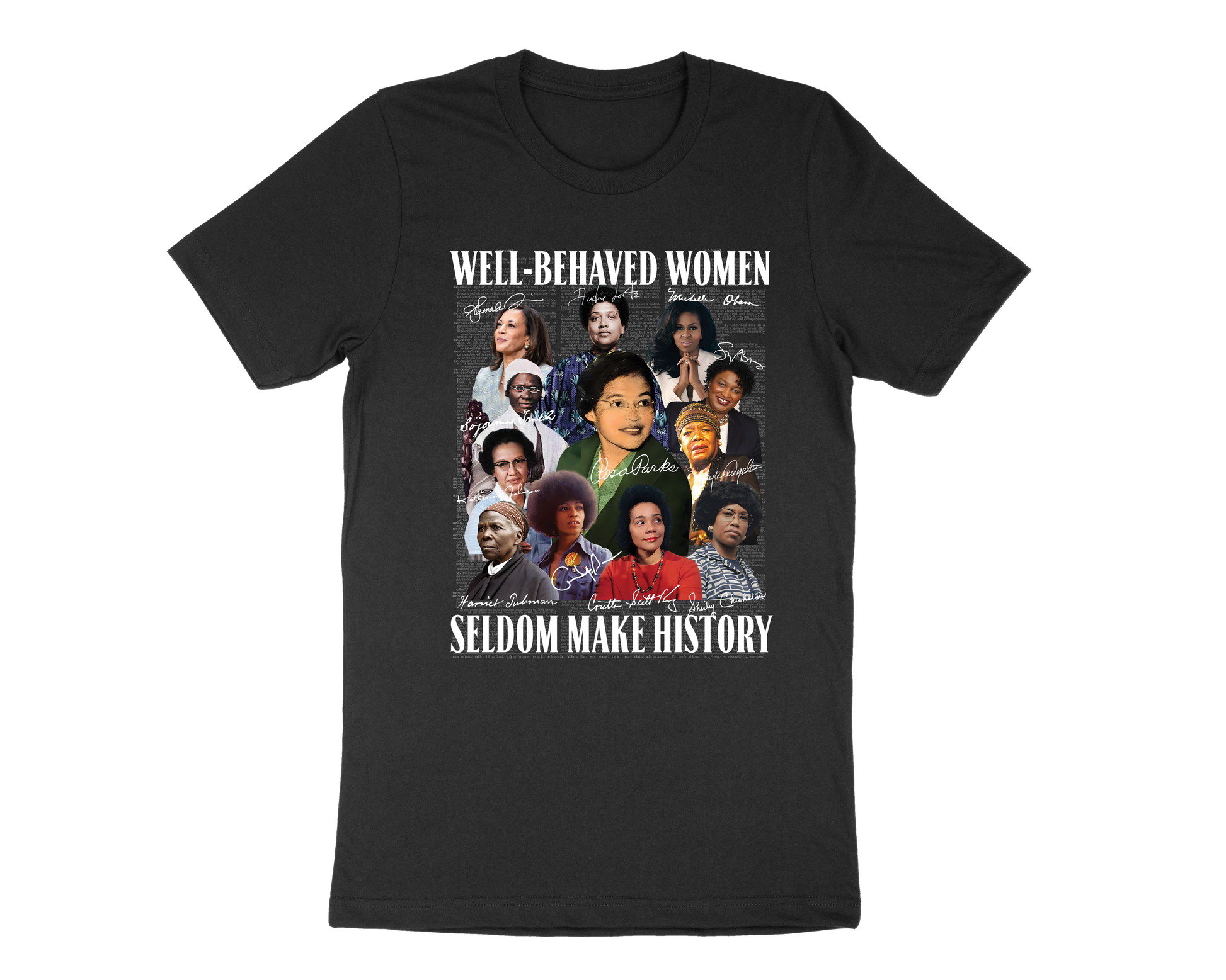 A powerful graphic tee celebrating iconic women who changed the world. Featuring a bold collage design on a classic black shirt, this piece honors strength, leadership, and fearless individuality. Perfect for everyday wear or making a statement.